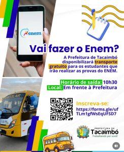 A Prefeitura de Tacaimbó está garantindo transporte gratuito para todos os estudantes que vão participar das provas! 🙌✨