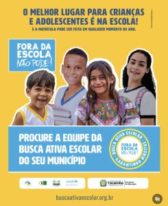 📚✨ O melhor lugar para crianças e adolescentes é na escola! A educação transforma vidas e abre portas para o futuro. Nenhuma criança ou adolescente pode ficar fora da escola. A matrícula pode ser feita em qualquer momento do ano! Se você conhece alguém que está fora da sala de aula, procure a equipe da Busca Ativa Escolar do seu município. Juntos, podemos garantir o direito de aprender e construir um futuro melhor. 💙 📍 Em Tacaimbó, procure a Secretaria de Educação ou a equipe da Busca Ativa Escolar. #ForaDaEscolaNãoPode #BuscaAtivaEscolar #EducaçãoParaTodos #PrefeituraDeTacaimbó