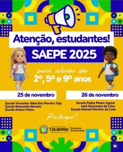 A Prefeitura de Tacaimbó e a Secretaria de Educação seguem trabalhando para oferecer um ensino de qualidade que transforma o futuro das nossas crianças e adolescentes. 🌟